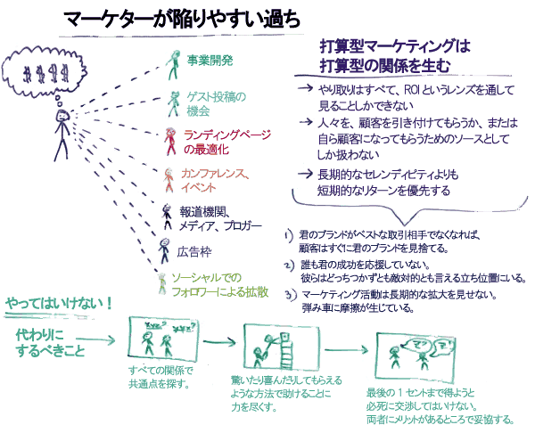 僕たちは皆、コンタクトされる立場になったことがある。つまり、僕たちは皆、こういう打算型の考えをするマーケターからリーチされる側になったことがあるということだ。
