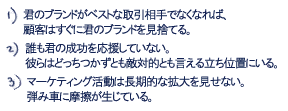 「長期的な関係」や「関係の可能性」よりも「短期的なリターン」を常に重視している打算型モデルでは、君のブランドが顧客にとって最高の取引でなくなれば、君のブランドはすぐに見捨てられることになる。