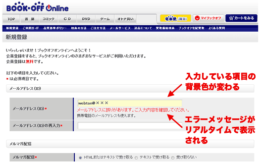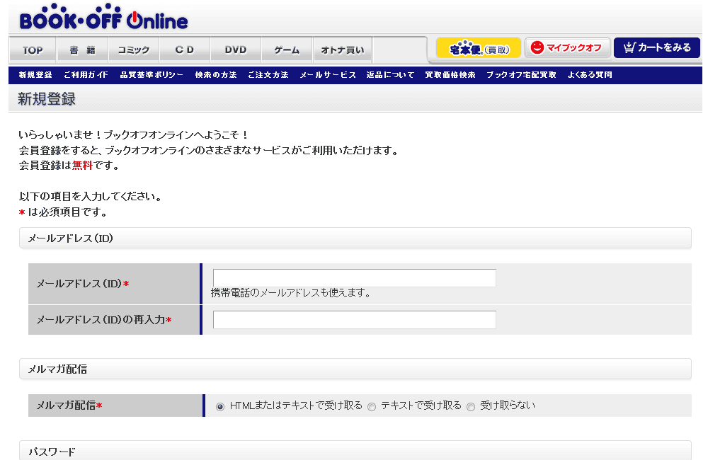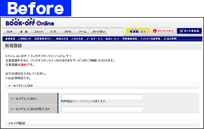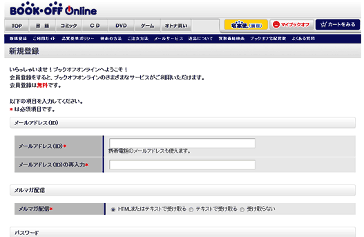 第3回の「惜しい!」エントリーフォームとして紹介するのは、ブックオフオンライン様の「新規会員登録フォーム」です。