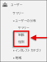 - メニューが開くので、[ユーザーの分布]>[性別]をクリックする