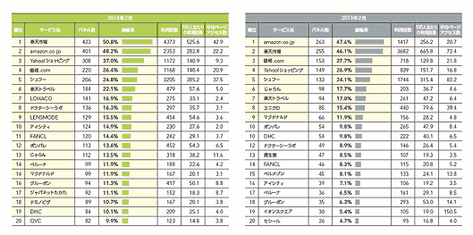 実際に、前述2サービスの平均ページアクセス数は「楽天市場」や「Amazon.co.jp」といった大手総合サイトよりも多い。アクセス後すぐに離脱するような利用ではなく、サービス内の様々なページがじっくりと閲覧されている好例といえよう。