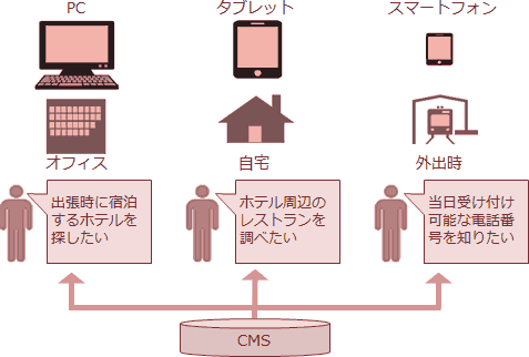 PCによる閲覧が中心だったWebサイトが、多様なデバイスからも閲覧できるとなれば、「いつでも」「どこでも」というキーワードが浮上してくるはずだ。