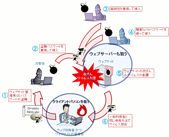 企業Webサイトの管理者は、会社を出たら1人の個人です。その個人として行動しているときを狙われています。パソコンを自宅に持ち帰った際や、昼休みにWebサイトにアクセスをした際などにウイルスに感染し、それが原因で企業Webサイトの管理者権限を奪われてしまうケースがあります(安達氏)