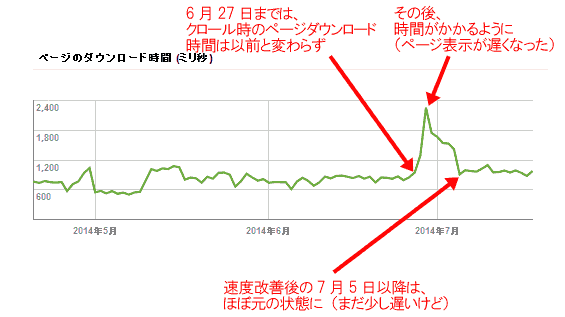 まずこれは、ウェブマスターツールでのページダウンロード時間です。
