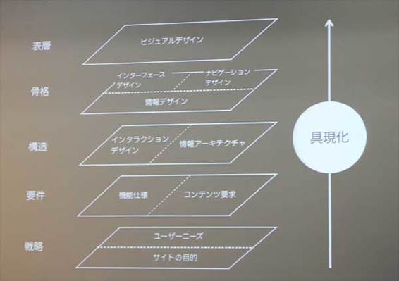 次に坂本氏は、デザインを行うにはプロセスが重要になると、以下の図を示す。表層的なビジュアルを検討するには、必ずこれらのプロセスを踏まえるという。