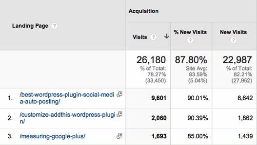- 詳細なレポート: カスタマイズされたより詳細なレポート。(not provided)となるトラフィックに関して、詳細なランディングページ情報がわかる。