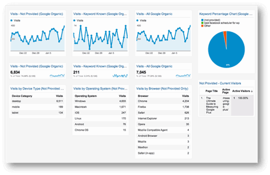 この「Not Provided」キットは、Googleアナリティクス用の簡単なアドオンのセット(私@danbarkerがまとめた)で、データが得られなくなくなった今、何が起きているのかを理解するのに役立つ。問題の解決になるわけではしないが、(not provided)となる訪問に関して、新たな知見をもたらすだろう。