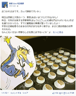 奥田Facebookを始める前から、お客様と話していると「あ、カッパですよね!」と言われることが多くありました。50年近く前からカッパをCMに使っていることもあって、「カッパの黄桜」というイメージが強いのですね。そこで、黄桜という会社よりもカッパのキャラクターが前面に出て広報担当として運用するほうが、お客様にとってすんなり伝わると考えました。