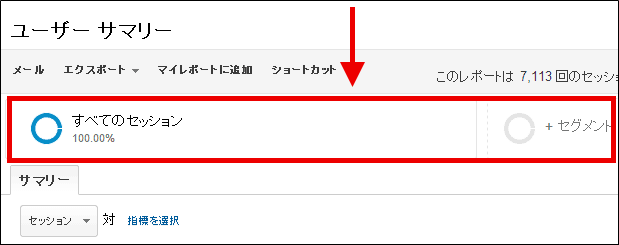 セグメント機能が利用できれば、レポートの左上にどのセグメントを適用しているのかを表示する場所がある(図1赤枠部分)。