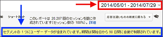 たとえば、集計期間が2014/05/01~2014/7/31(3ヵ月・92日間)と指定されているレポートに、「ユーザー」ベースのセグメントを掛けると、自動的に90日でカットされ、2014/05/01~2014/7/29に集計期間が調整される(図1赤枠部分)のだ。