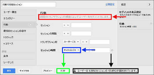 このような思い違いや、誤解を少なくする方法は2つある。1つ目はセグメント作成機能の中にある「テスト」機能だ。