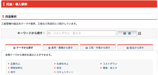 異なる事業部が集まって、このように統一されたインターフェースにするためには、バックエンドのシステムやデータの整備・維持運用がしっかりと整っていることが前提になります。FAサイトでは、部門ごとに不揃いだったり、あったりなかったりだったデータベースを無理に統合することはなく、いわゆるサイト内検索の発想を活用することによって、設計通りのユーザーインターフェースに沿ったアウトプットができる仕組みを実現しました。
