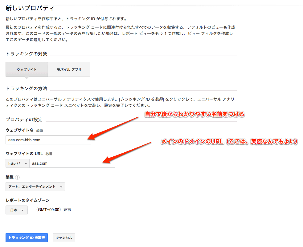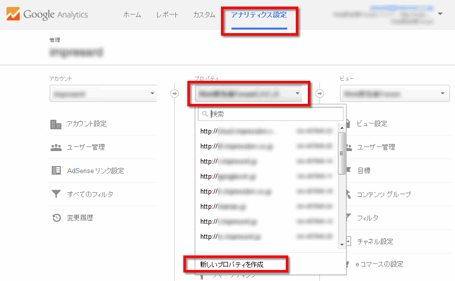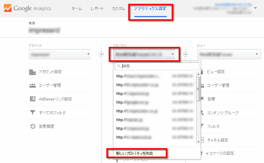 まずデータの入れ物であるプロパティを新規作成する。今後は、このプロパティに複数ドメインをまとめたデータが入ることになる。