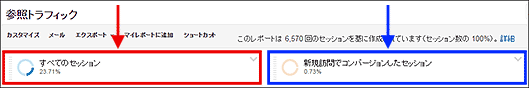 - 「新規訪問でコンバージョンしたセッション」セグメント、「すべてのセッション」セグメントを「適用」する