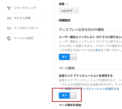 拡張リンクのアトリビューションを有効にすると、ページ解析のデータなどがより詳細に取得できる。