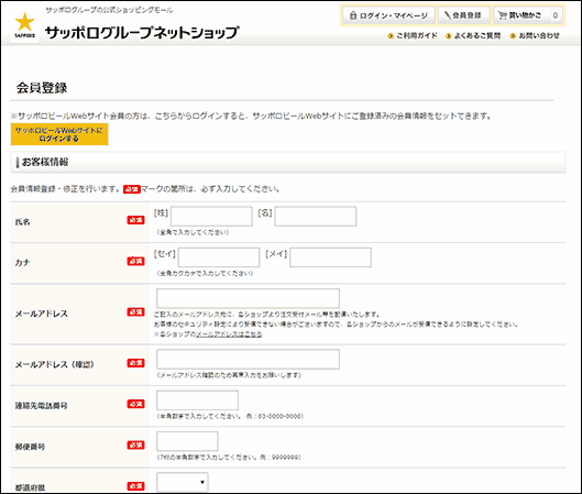 今回は「惜しい!」エントリーフォームとして紹介するのは、サッポログループマネジメント株式会社様の会員登録フォームです。このフォームの良いポイントは、次のようなところです。