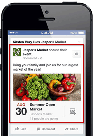 従来はデスクトップ右側の広告エリアのみの表示でしたが、ニュースフィードにも広告が表示されることで、イベントの認知拡大に貢献、より大きな反響が期待できます。