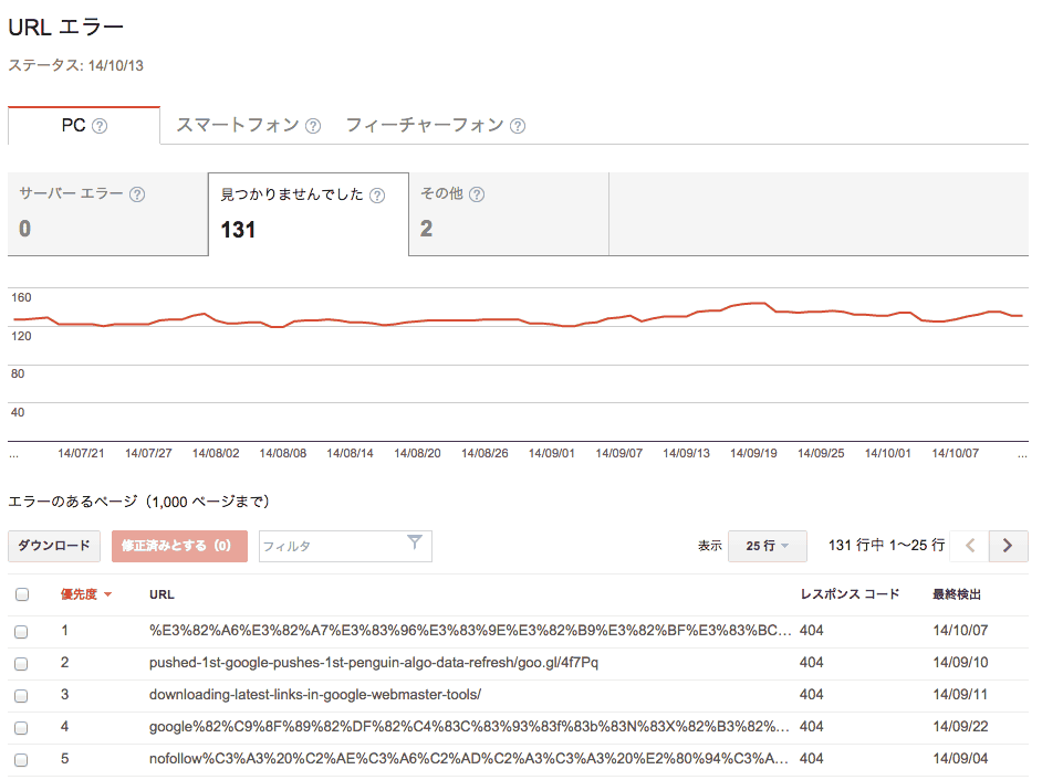 ウェブマスターツールの404エラーは重要度順に並んでるって知ってた?