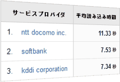 | 順位 | キャリア | 平均ページ 読み込み時間 |