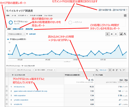 Googleアナリティクスでモバイルキャリア別速度を比較できる!