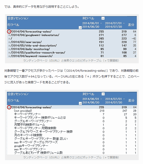GoogleアナリティクスとExcelを活用しており、スクリーンショット付きで作業方法を解説してくれているので、わかりやすい。
