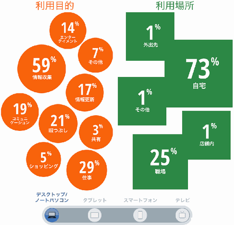 - 1日のうち「どの時間帯に」「どのデバイスが」使われているか