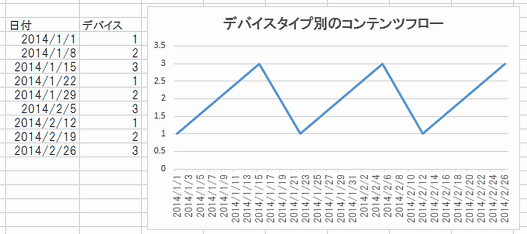 もう1つは、各デバイスに数字を割り当て、時間経過にそったコンテンツの「フロー」を次のようにグラフにすることだ。