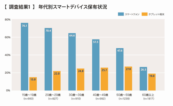 - ①年代別スマートデバイス保有状況