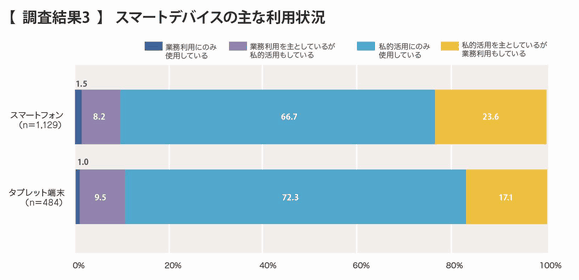 スマートデバイスは、私的な利用と業務での利用、どちらが多いのだろうか。