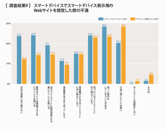 - ⑨スマートデバイスでスマートデバイス表示用のWebサイトを閲覧した際の不満