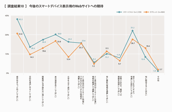 今後のWebサイトに最も期待することとして回答が多かったものは、スマートフォンユーザーでは、次のとおり。