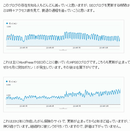 更新性がさほど問われないタイプのサイトでは、更新を止めても影響を受けないようだ。