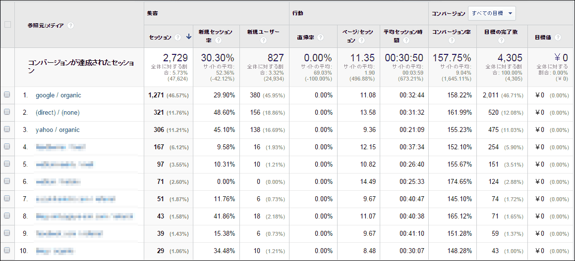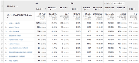おそらく、ほとんどの人は素直に、[集客]>[すべてのトラフィック]レポートに、標準セグメントの1つである「コンバージョンが達成されたセッション」を掛けて表示してみるのではないかと思う。