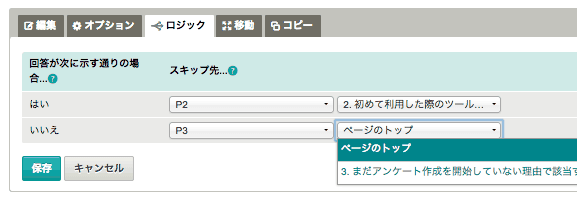 サーベイモンキーでは、たとえば、ある質問に対して「Yes」と答えた人と「No」と答えた人で、次の質問から別のものを提示するといった分岐のロジックを組み込める。