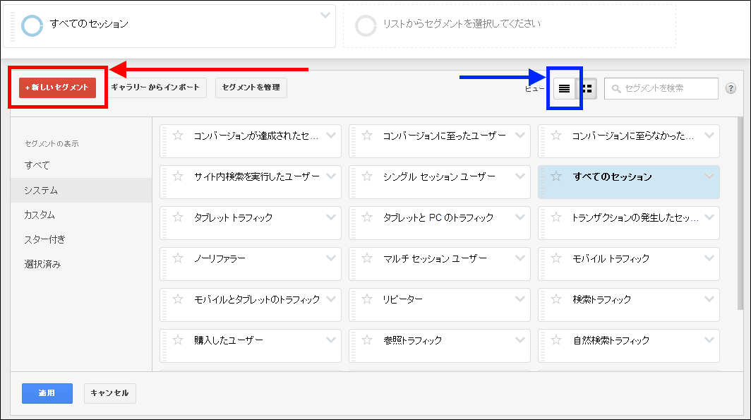 標準に用意されているセグメントには今回紹介するセグメントは存在しないので、新しいセグメントを作成していく必要がある。