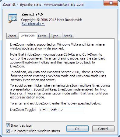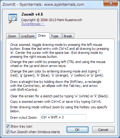 うーん。インスト-ル方法や設定画面を説明するだけでは、ZoomItの魅力や便利さは伝わらないですね。いちど使ってみてください。あなたも虜になるはずです。