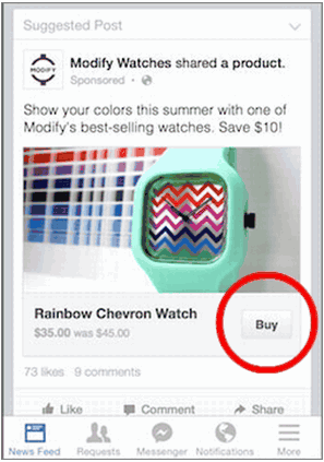 「購入」(Buy)ボタンは、クリックしたユーザーがFacebookから離れることなく、Facebook上で商品を購入できるボタンです。この購入ボタンの設置をテスト中と言及しています。ただし、一部地域のみが対象、2014年12月時点では日本での展開時期についての言及はありません。