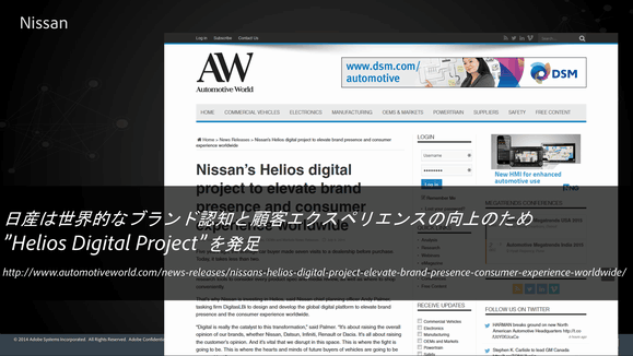 そうした例は、ほかにもある。日産自動車が世界規模で展開している「ヘリオスプロジェクト」と呼ばれるマーケティング活動だ。