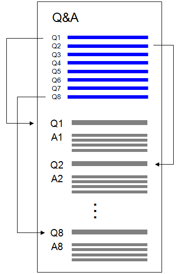 質問のリストがあって、それをクリックすると同じページの中の回答部分が呼び出されるという仕組みです。作成が手軽なので多く用いられている方法です。
