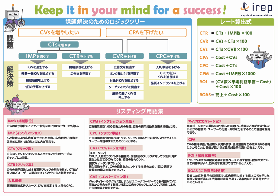 - リスティング運用担当者さんが忘れちゃいけないCTR、CVR、CVs、CPA、CPC、CPM、ROI、ROASなどの計算式