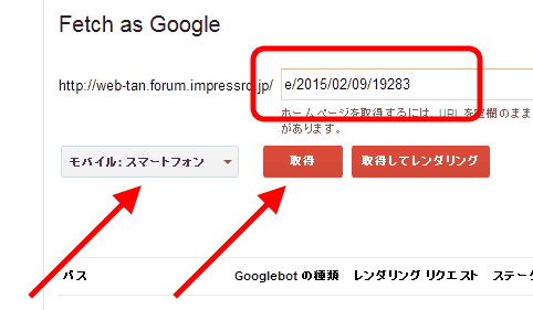 ウェブマスターツールの[クロール]>[Fetch as Google]で、たとえばPC向け表示ページのURLパスを入力し、下の選択肢で「モバイル: スマートフォン」を選んで[取得]してみよう。モバイル向けに正しくリダイレクトされているかどうかがわかるはずだ。