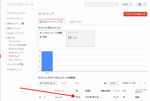 詳細な説明も記事には書かれている。もちろんきちんと理解しておいたほうがいいのだが、たとえ理解できなかったとしても心配しなくていい。XMLサイトマップを送信していない場合でも、サイトのRSSフィードをRSS形式のサイトマップとしてウェブマスターツールで登録しておこう。