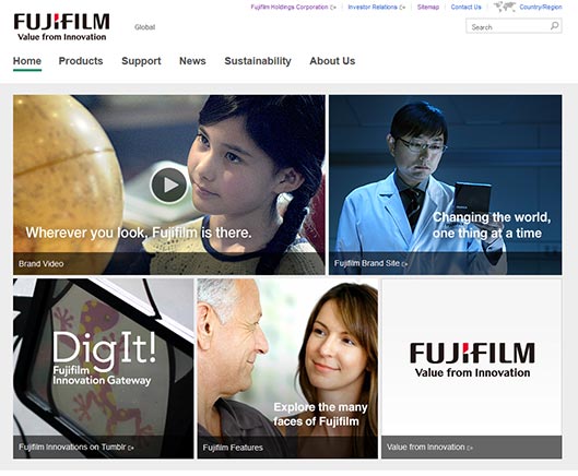第3段階は、Tシャツをそろえる! ということで、コンテンツエリアをそろえていき、最終的にコンテンツの共有、デザイン統一が完了し「富士フイルム・グローバル・サイト」がほぼ完成し今の姿になりました。
