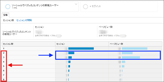 バズったコンテンツに来訪した新規ユーザーの、その後の訪問回数を確認するには?