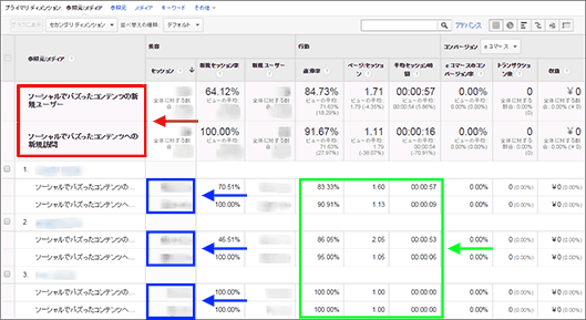 ソーシャルメディアから来訪したユーザーがどれぐらいサイトに定着しているか分析できるようにするための方法