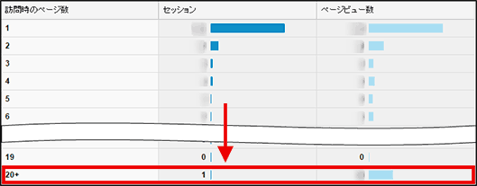 たとえば図10赤枠部分は1回の訪問で大量のページを見ていたことを示している。こういう閲覧行動があると全体の平均値もグッと上がることがあるので、注意が必要なのだ。