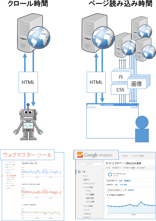 ちょっとわかりづらいですが、ここでいう「クロール時間」と「ページ表示時間」は、次の意味です。