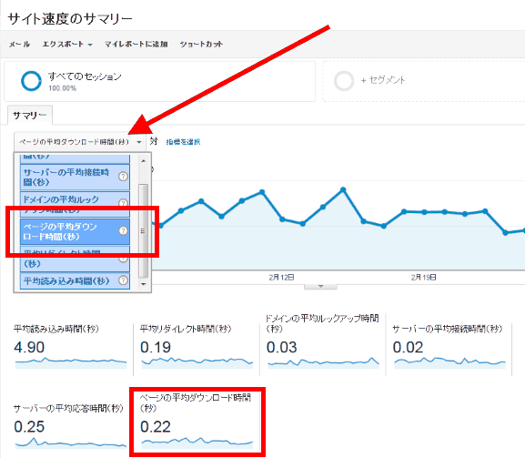 ちなみに、Googleアナリティクスでも、サイトの速度レポートで「ページの平均ダウンロード時間」を確認すればクロール時間を確認できます。