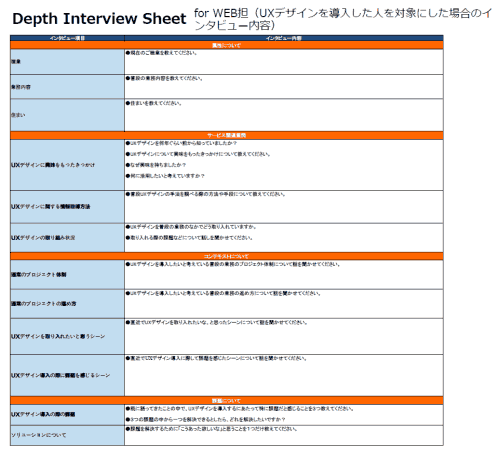 ちなみに、本ワークショップではインタビュー自体は行いません。インタビューはワークの後に質問リストを上記の体裁でまとめ、別途実施してください。
