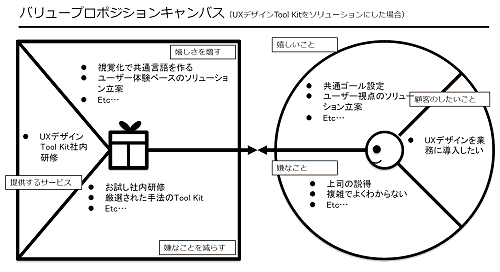 「バリュープロポジション(価値提案)キャンバス」とは、プロダクト/サービス提供側の視点と顧客の視点のバランスをとり、顧客ニーズにフィットした価値提案を検討するためのツールです。